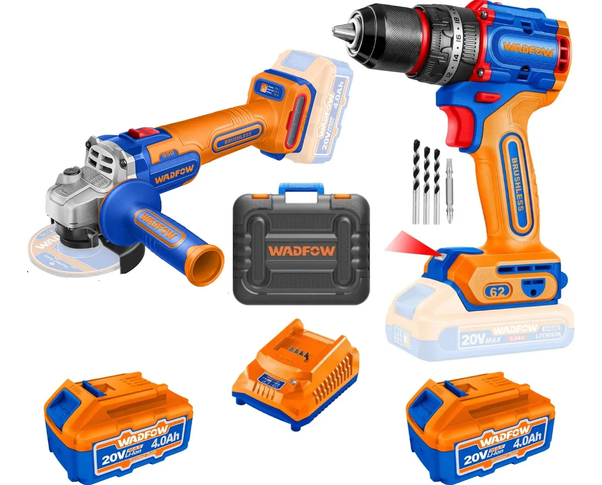Combo Taladro Percutor 62Nm + Amoladora Inalambicos Wadfow